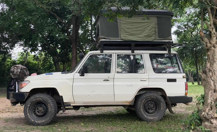 For double camping safaris, the 4x4 hilux can lift two double rooftop tents for 4 people on camping and self drive.